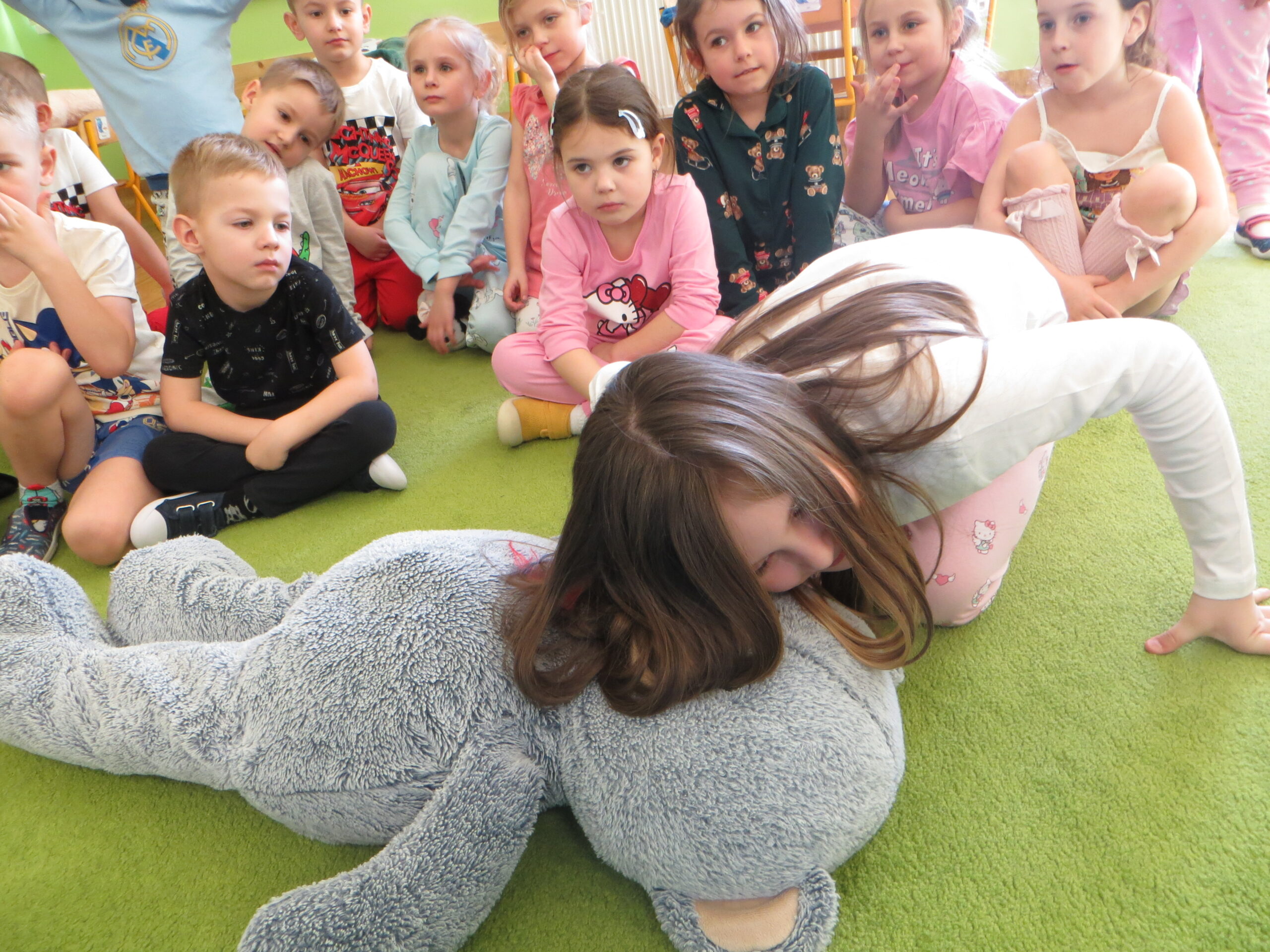 W naszym przedszkolu odbyły się niezwykłe zajęcia z pierwszej pomocy! Inspiracją była książka „Łukasz ratuje misia”, która pokazała dzieciom, że każdy – nawet najmłodszy – może pomóc w potrzebie. Dzieci już wiedzą, że to najważniejszy numer w telefonie, który sprowadza pomoc to 112. Przedszkolaki również z wielkim przejęciem uczyły się sprawdzać oddech i „pompować serduszko” na specjalnych manekinach. Dzięki połączeniu bajki o Łukaszu z praktycznym treningiem na fantomach, nasi mali bohaterowie oswoili strach i zyskali pewność siebie. Jesteśmy z nich bardzo dumni!