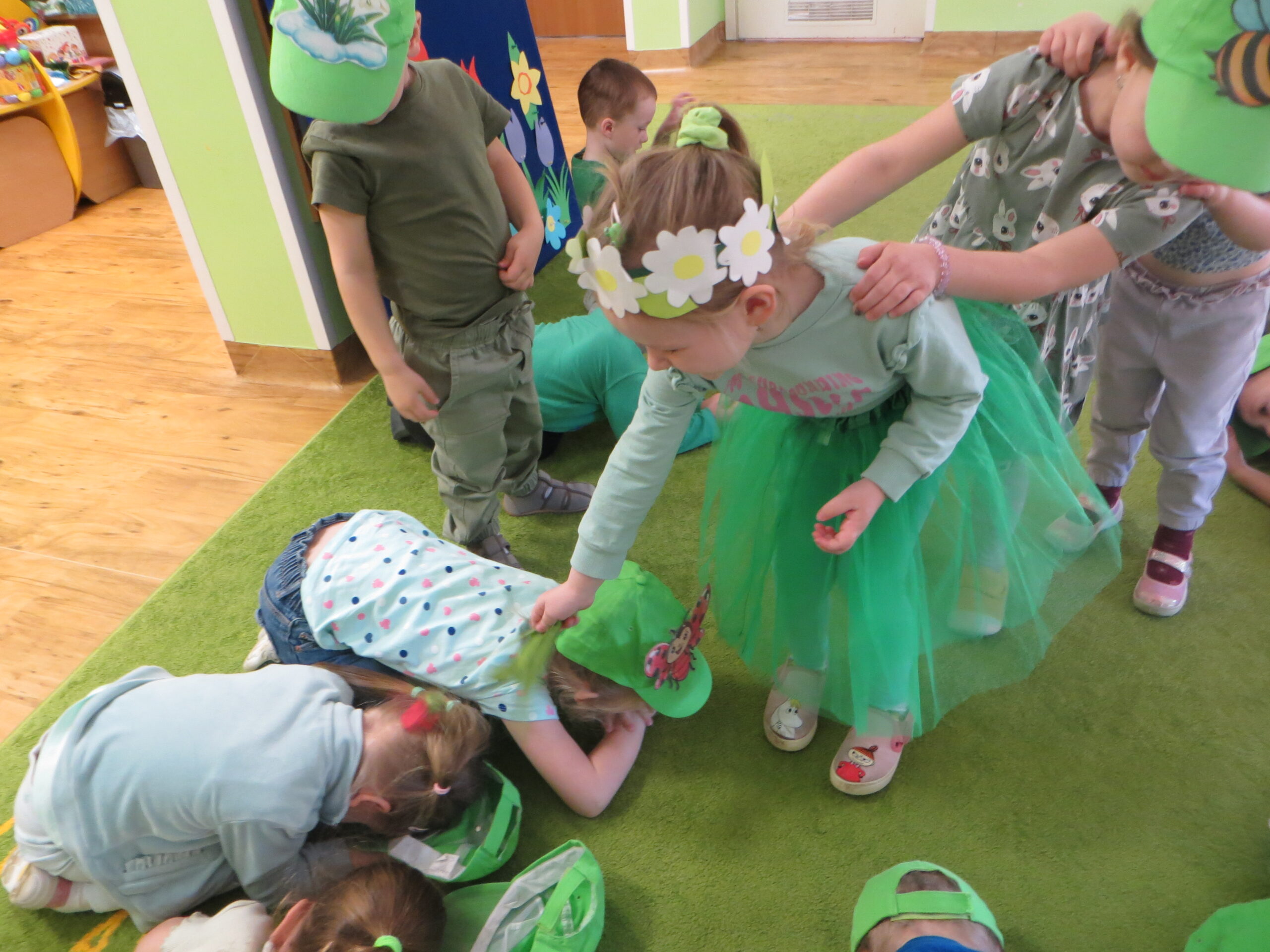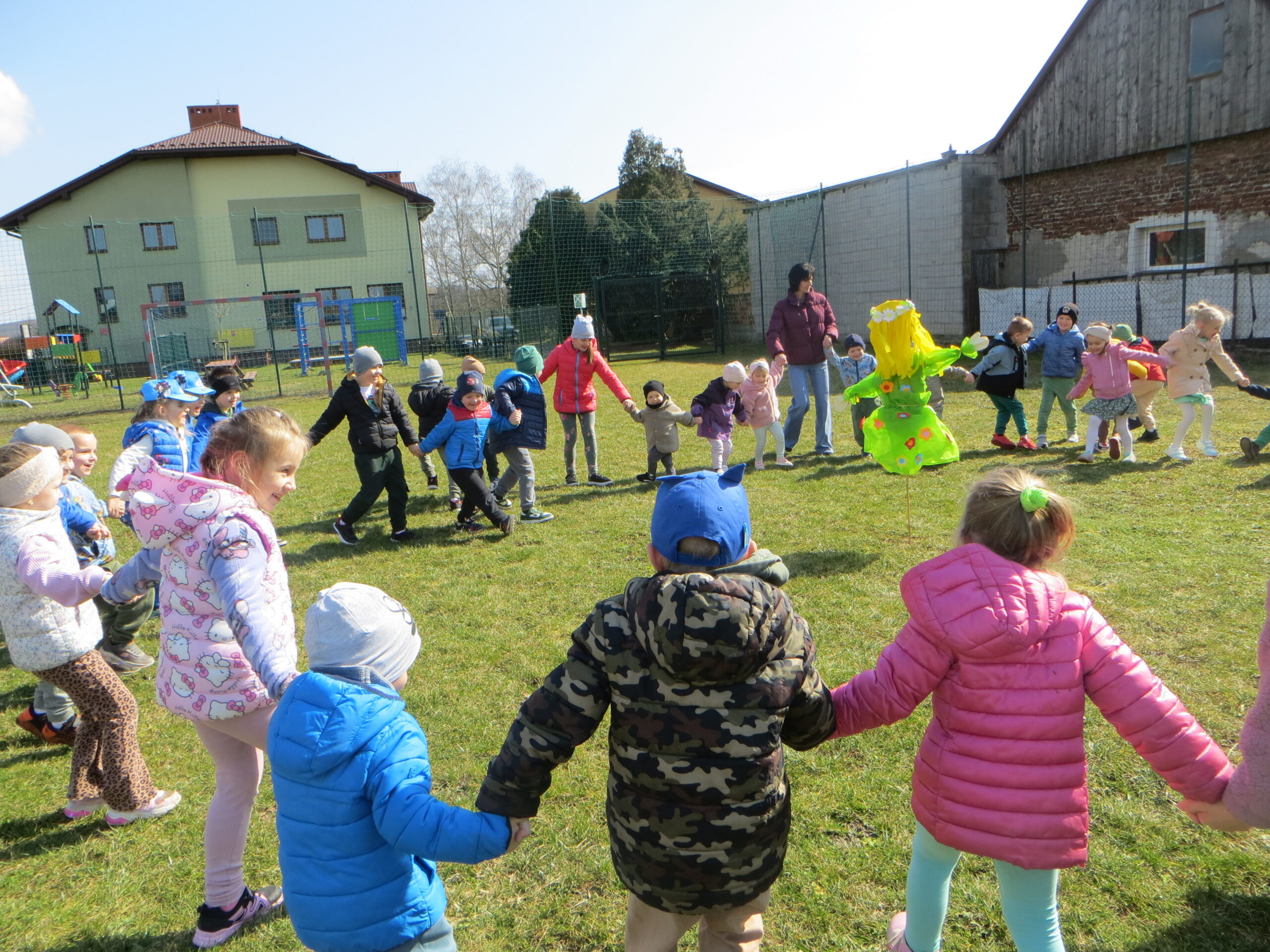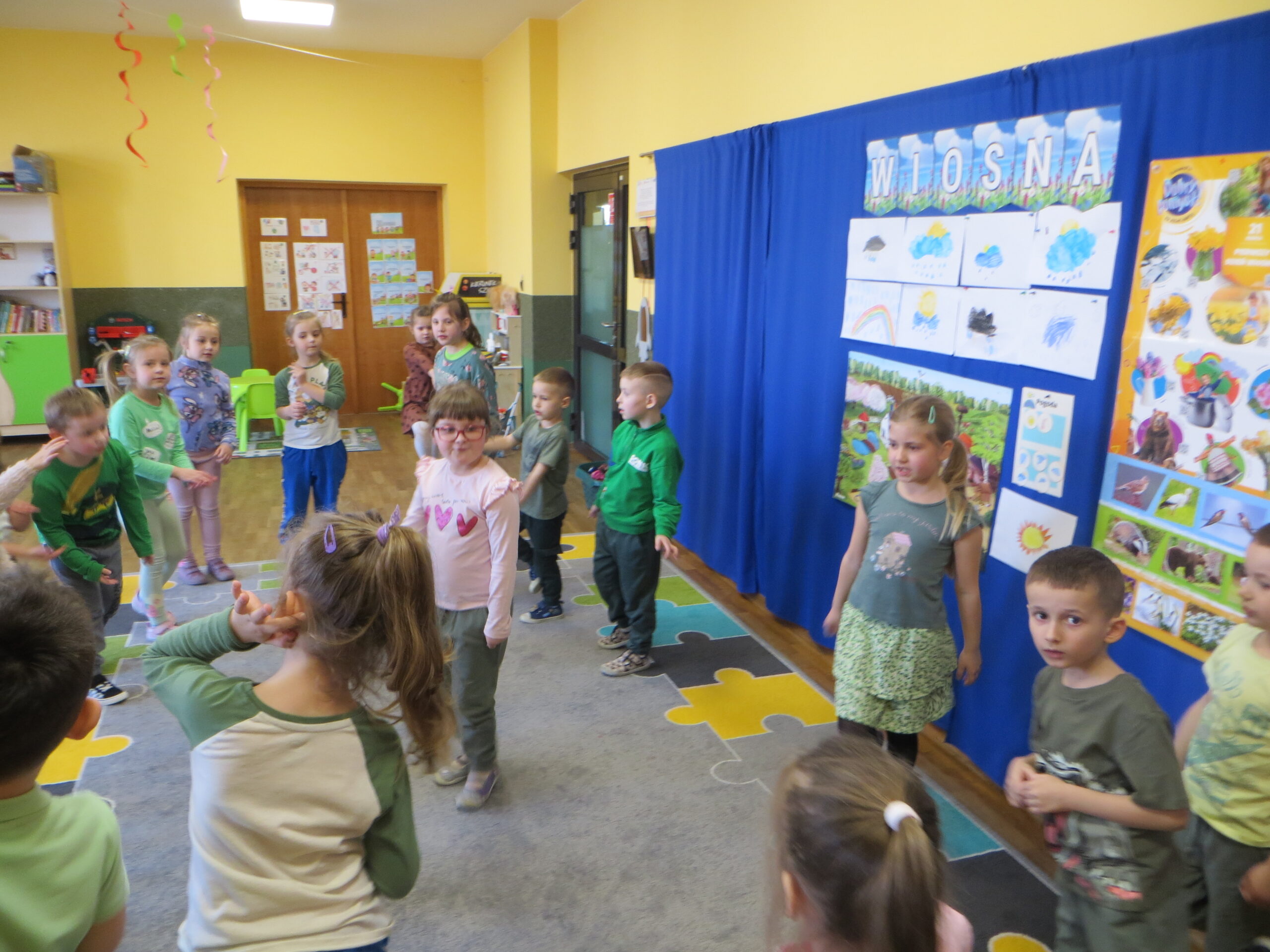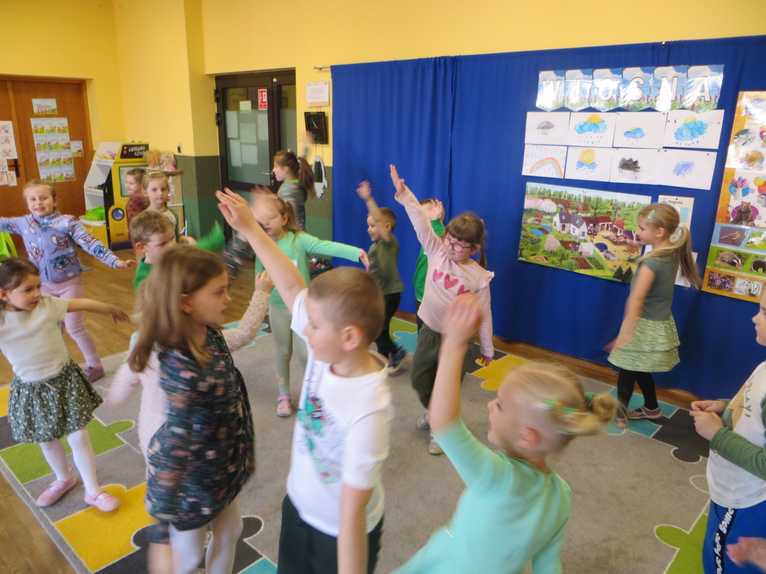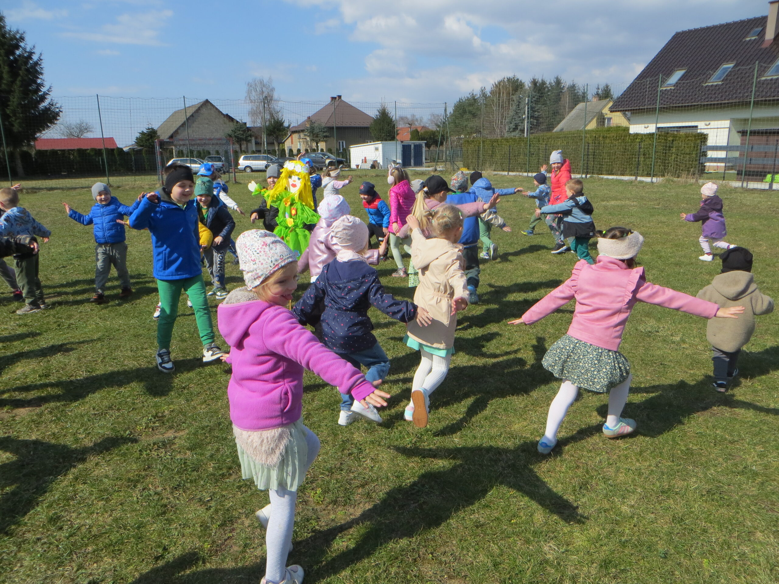 Dzieci brały udział w „wiosennej gimnastyce” i tanecznych korowodach przy dźwiękach radosnych piosenek.