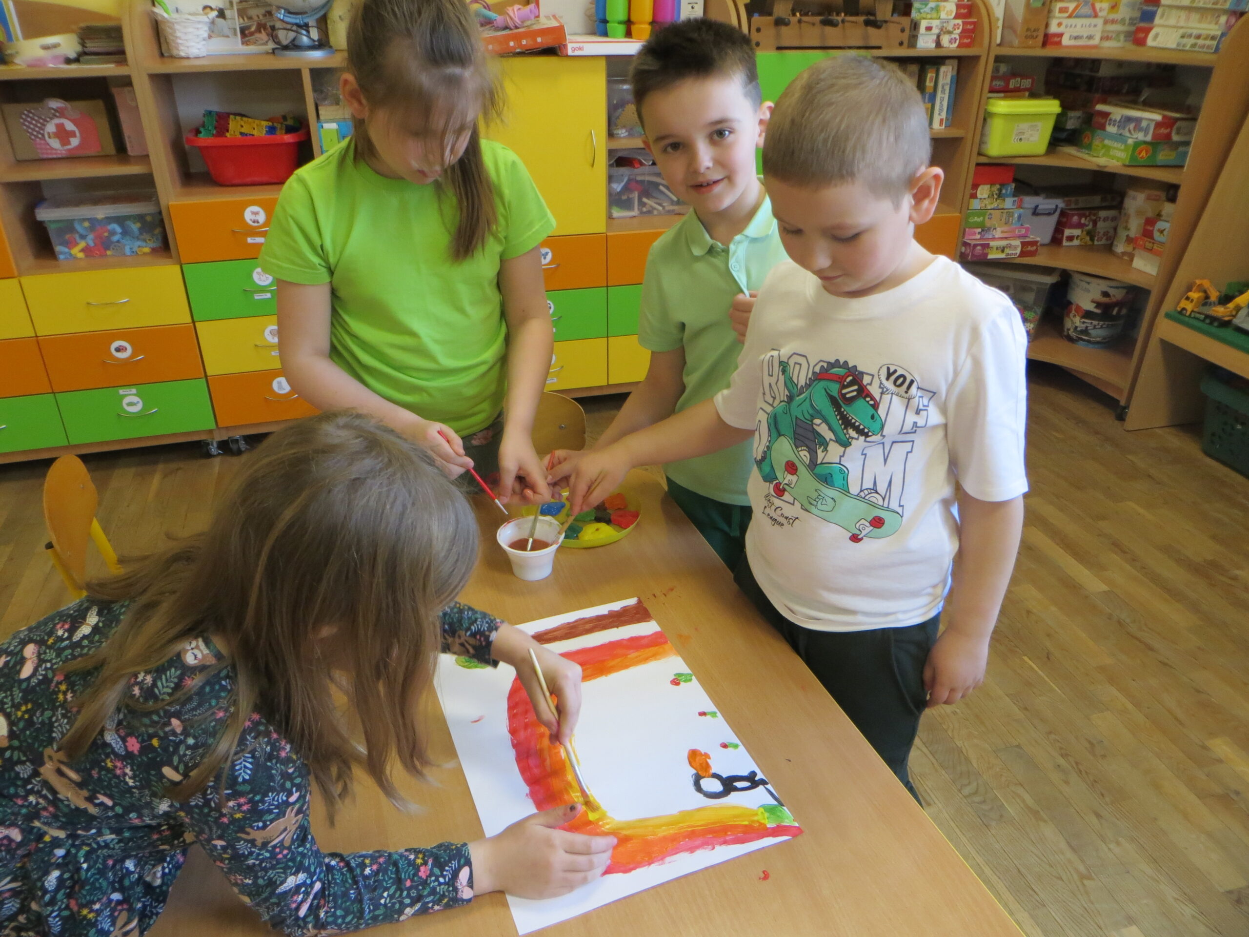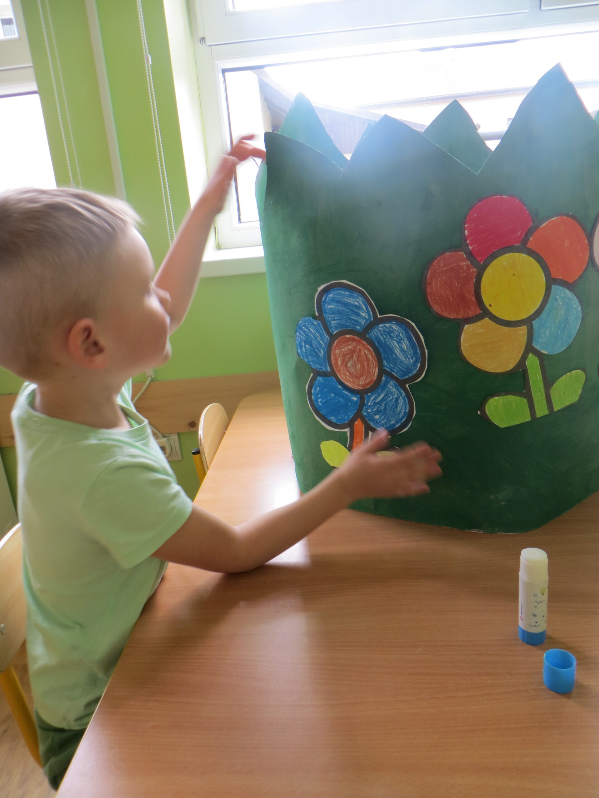 Podczas warsztatów plastycznych powstały barwne tulipany, papierowe motyle i uśmiechnięte bociany.